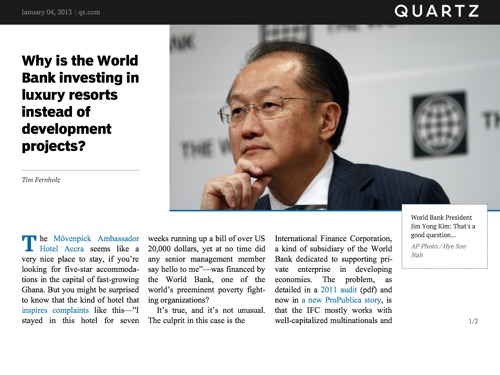 This ProPublica report has a wonderful insight on how Aworld Bank and it’s subsidiary have more investments on bigger projects, with big budgets and huge profit returns.
