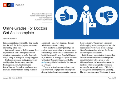 http://www.npr.org/blogs/health/2013/01/04/168626218/grades-for-doctors-get-an-incomplete