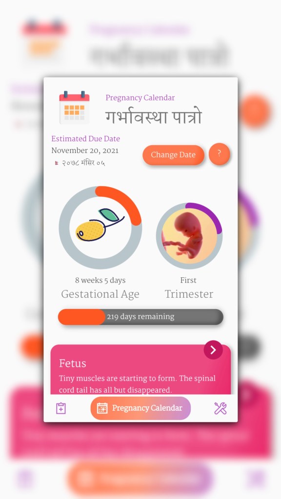 Its a great app…lots of valuable information for nepalese women who might have questions and concerns during their pregnancy!! It’s easy to navigate and is very comprehensive…you can add in your LMP to get your estimated due date
